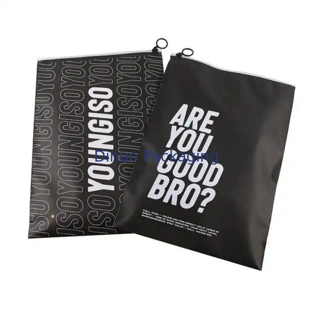 Özel Baskılı Logolu Giyim İç Çamaşırı Tişört Ambalajı CPE Siyah Plastik Sürgülü Fermuarlı Çantalar